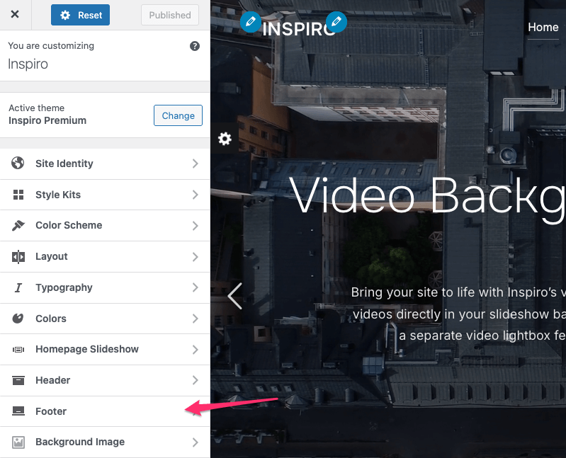 In Inspiro, you can easily customize the copyright text displayed in the footer of your website.
